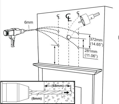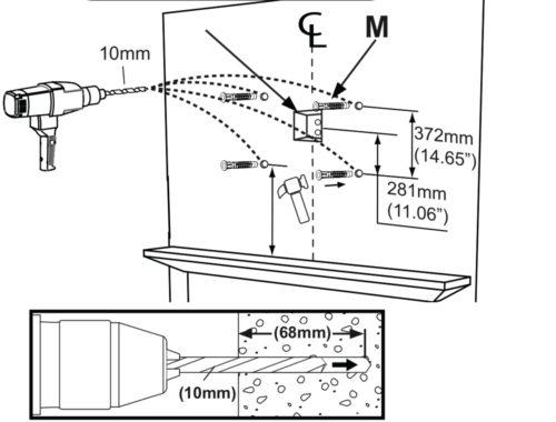 • Plasterboard walls ONLY – Using the stud finder, locate at least two studs and finding their center using a sharp awl to locate each edge lag bolt should be installed in the center of the studs