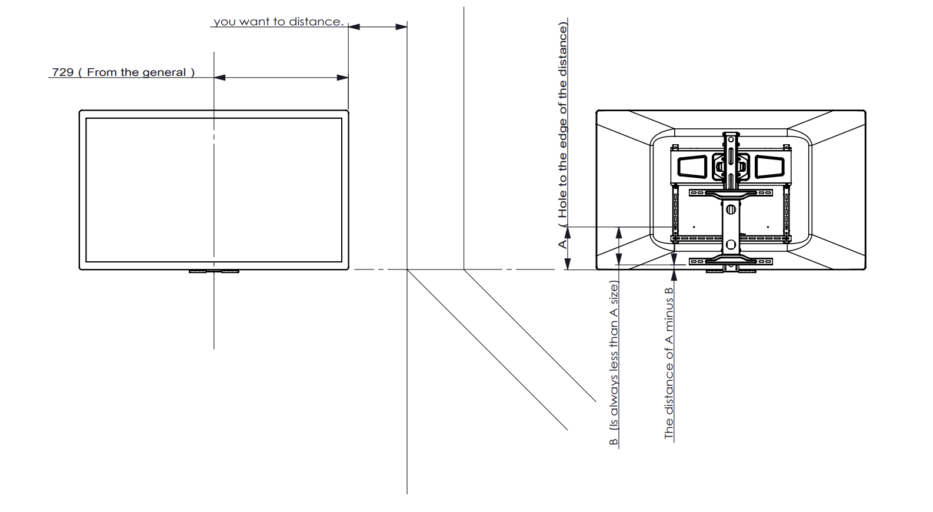 The above image is a rough guide for working out the TV drop position, as the VESA holes location on the back of the TV are different from TV to TV..