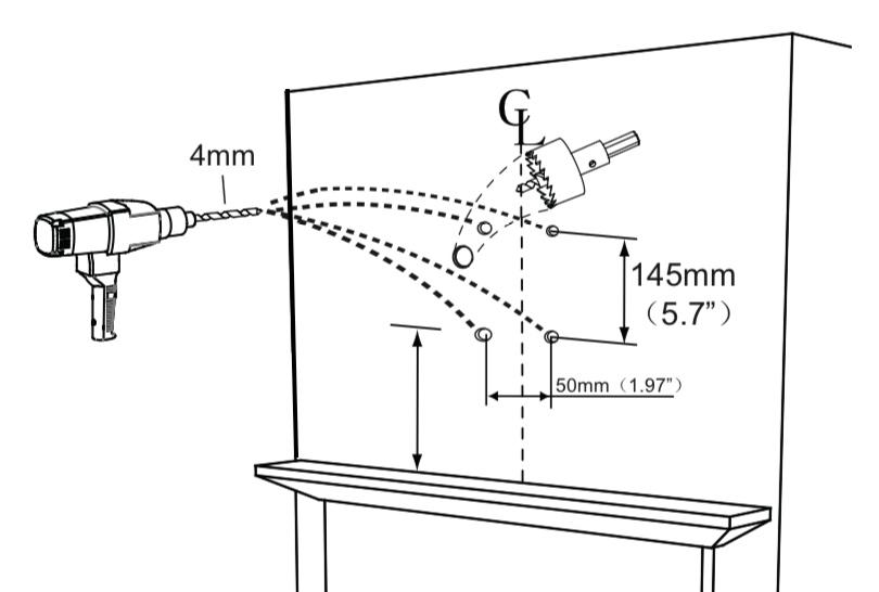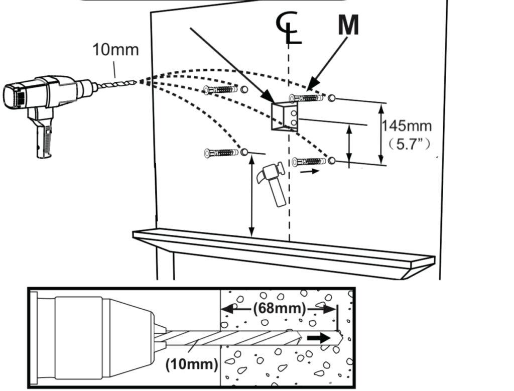Mount the wall bracket and then insert the bolts; ensure that the centerline passes through the wall bracket holes before fixing the bolts