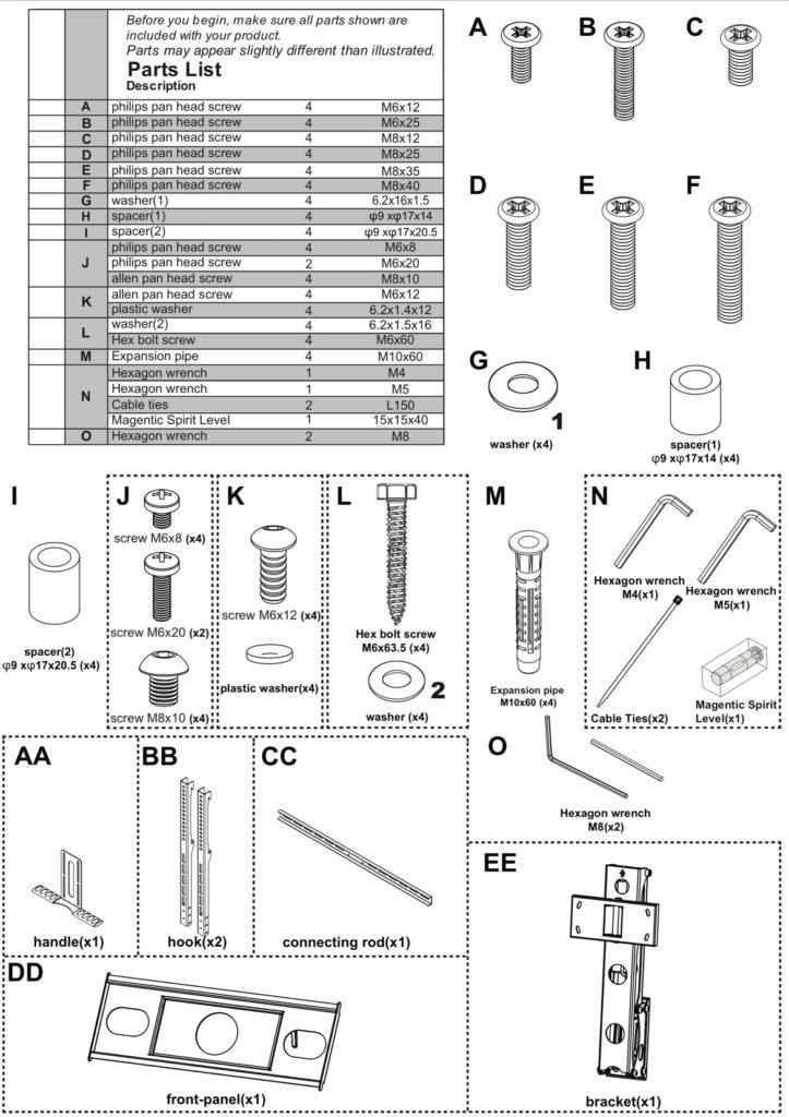 - The hooks on top of the hook bars are for hooking the TV to the bracket on the wall