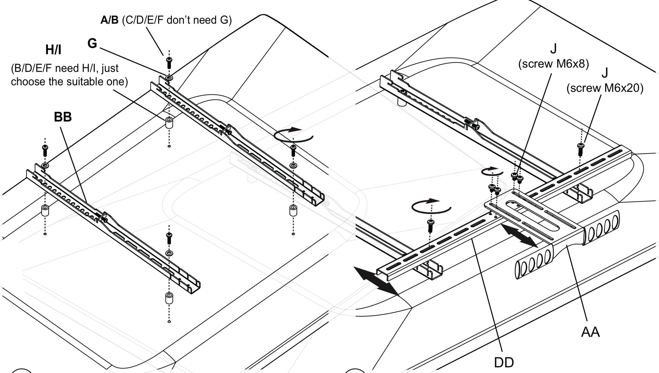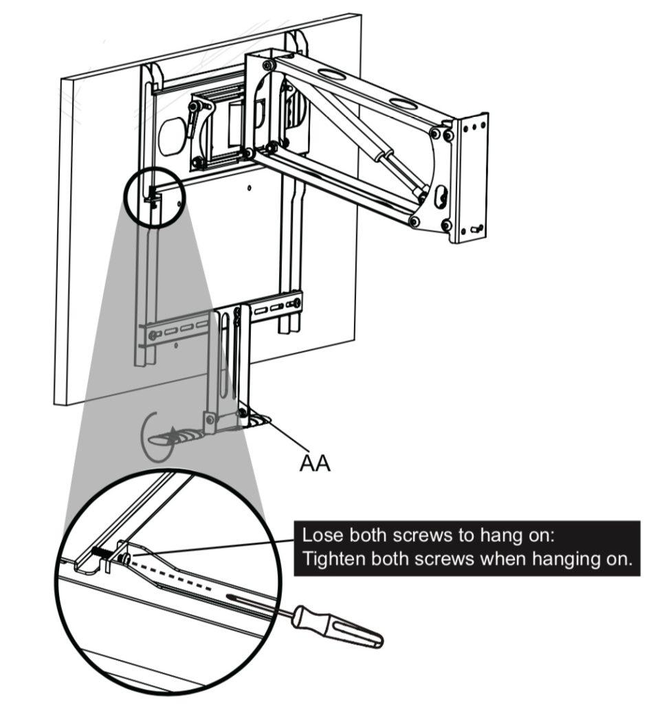Also, ensure the screws at the back of the hook bars are undone for fixing the TV to the crossbar