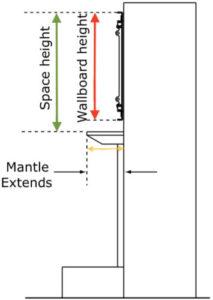 - The wallboard should be shorter compared to the space above the mantle. All this range depends on how far the mantle is extended